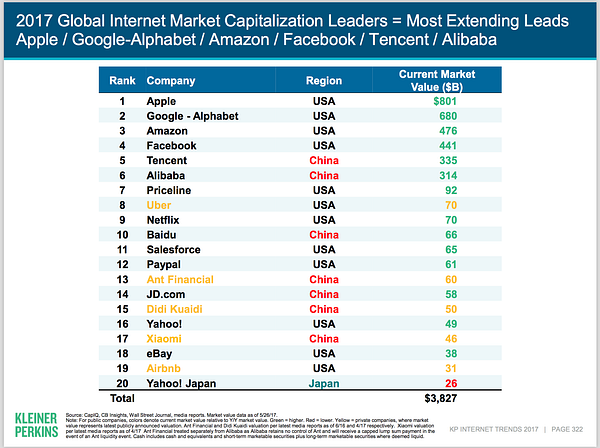 - Tencent dominates mobile time spent. >50%. Next up Alibaba, ~10%.